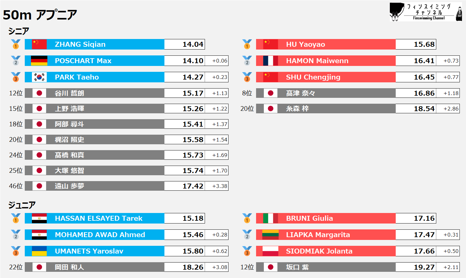 ワールドカップ_ゴールデンファイナル_アプニア_50m_結果(フィンスイミングチャンネル)