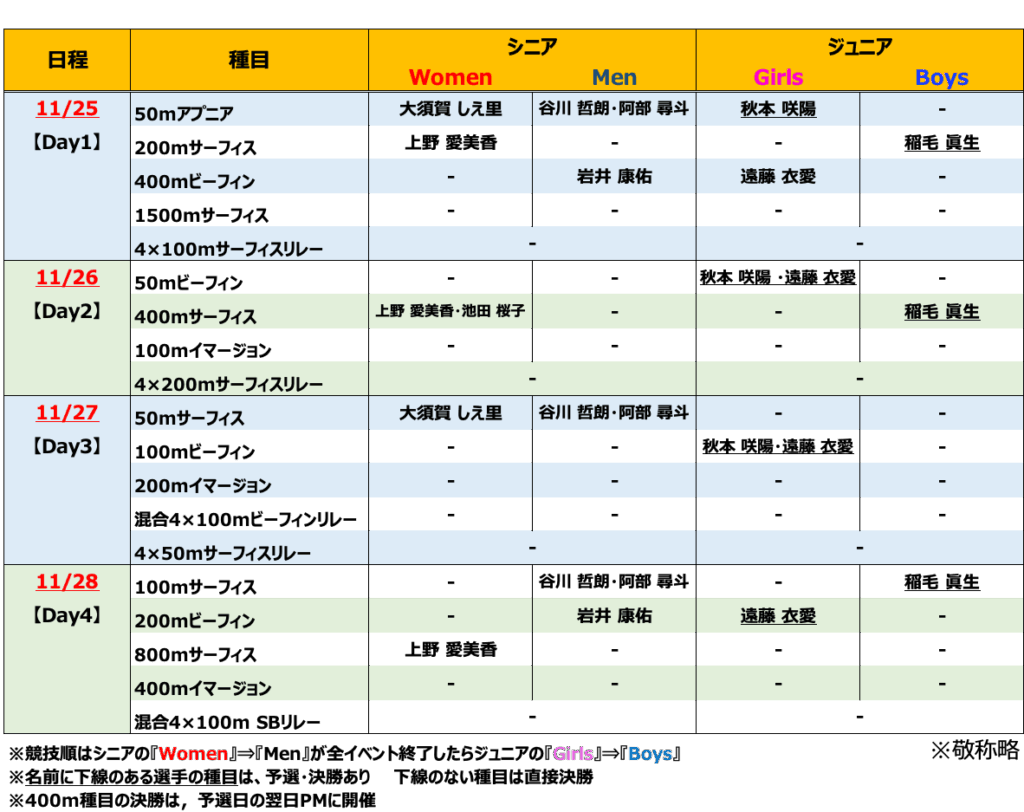 ・ジュニア 女子/男子 50mサーフィス 決勝